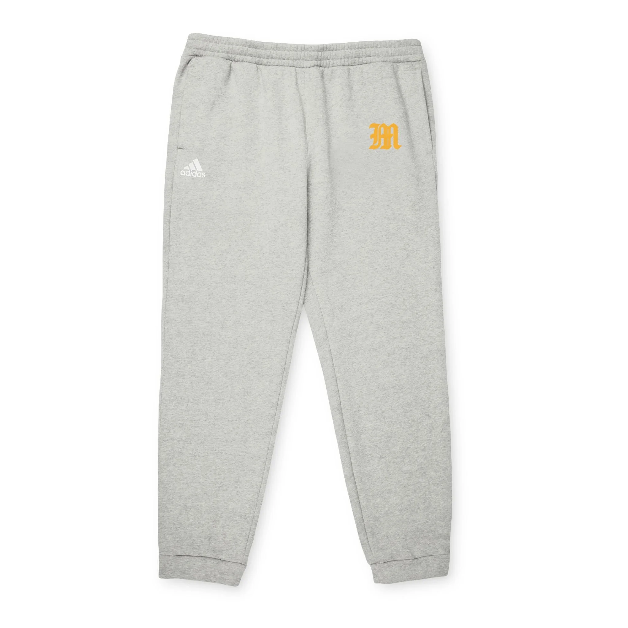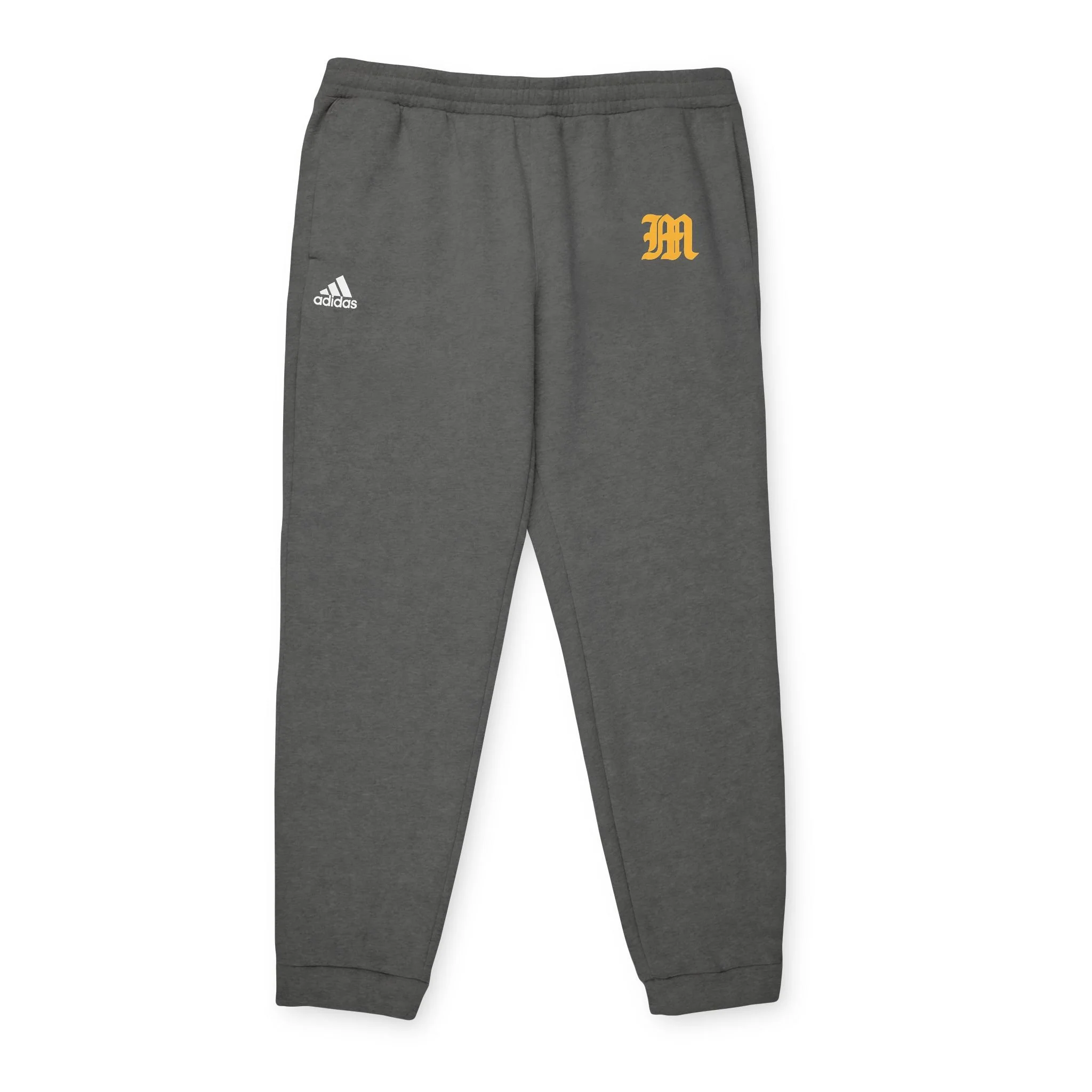 These charcoal fleece joggers bring easy, lived-in comfort with a clean, athletic edge. The mid-weight French terry holds structure while feeling soft against the skin. A tapered cuffed hem and elastic waistband with internal drawcord make them move-with-you reliable — pull them on after a long day, wear them while running quick errands, or layer under a coat for cooler walks. Subtle adidas branding and a small DTF-printed emblem on the hip add character without shouting for attention. They feel like the go-to pair you reach for when you want comfort that still looks put-together.