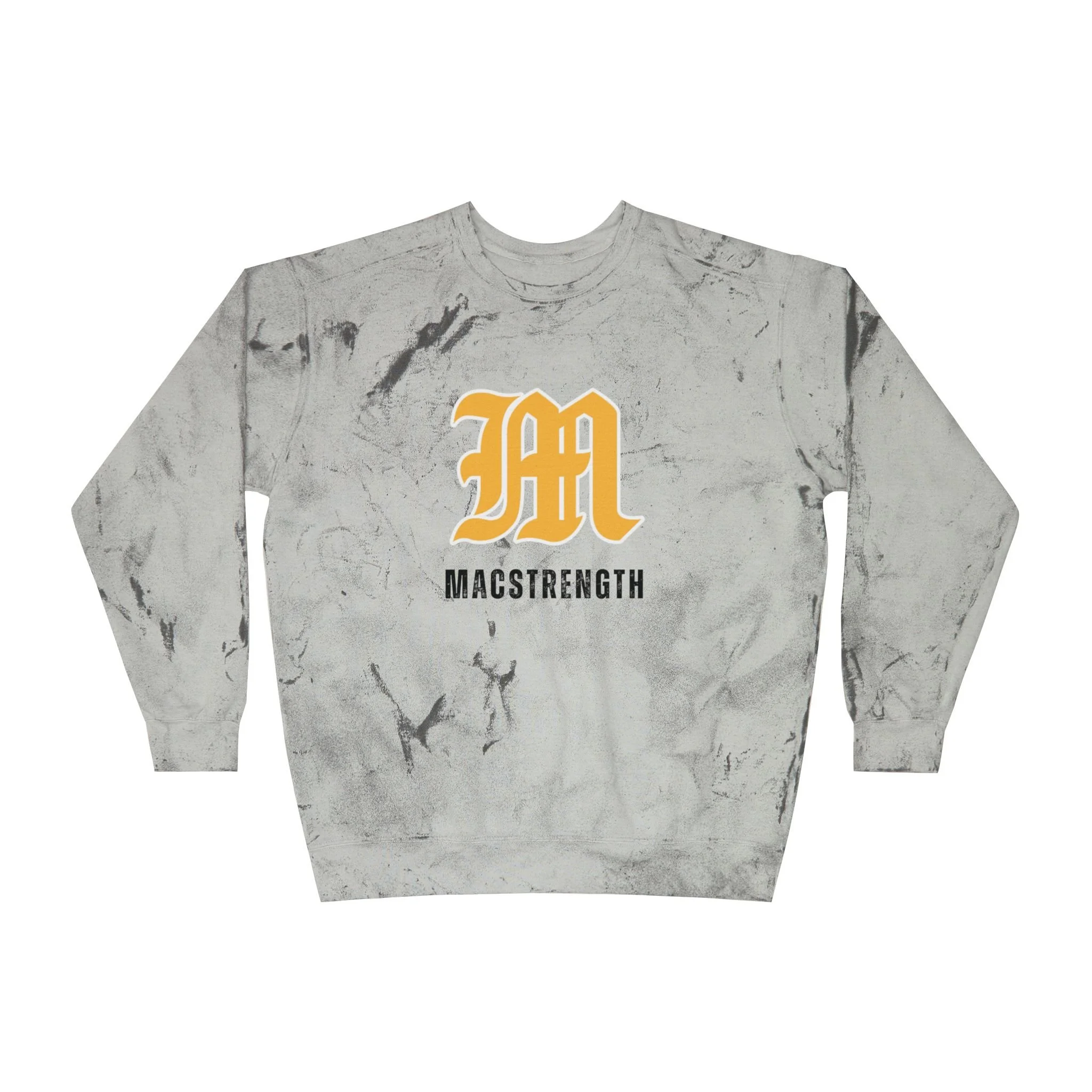 This relaxed crewneck brings worn-in character to everyday training and downtime. The garment-dyed, marbled fabric has a lived-in, stone-washed look that softens with wear while keeping a sturdy midweight feel. A bold varsity-style 'M' and compact wordmark sit on the chest, giving the sweatshirt a collegiate, performance-minded edge without feeling overly branded. Comfortable rib cuffs and a stable necktape make it wearable for long sessions in the gym, quick coffee runs, or lounging after a tough lift. It pairs naturally with joggers or jeans and reads as both athleisure and street-ready—an easy layer for whatever the day throws at you.