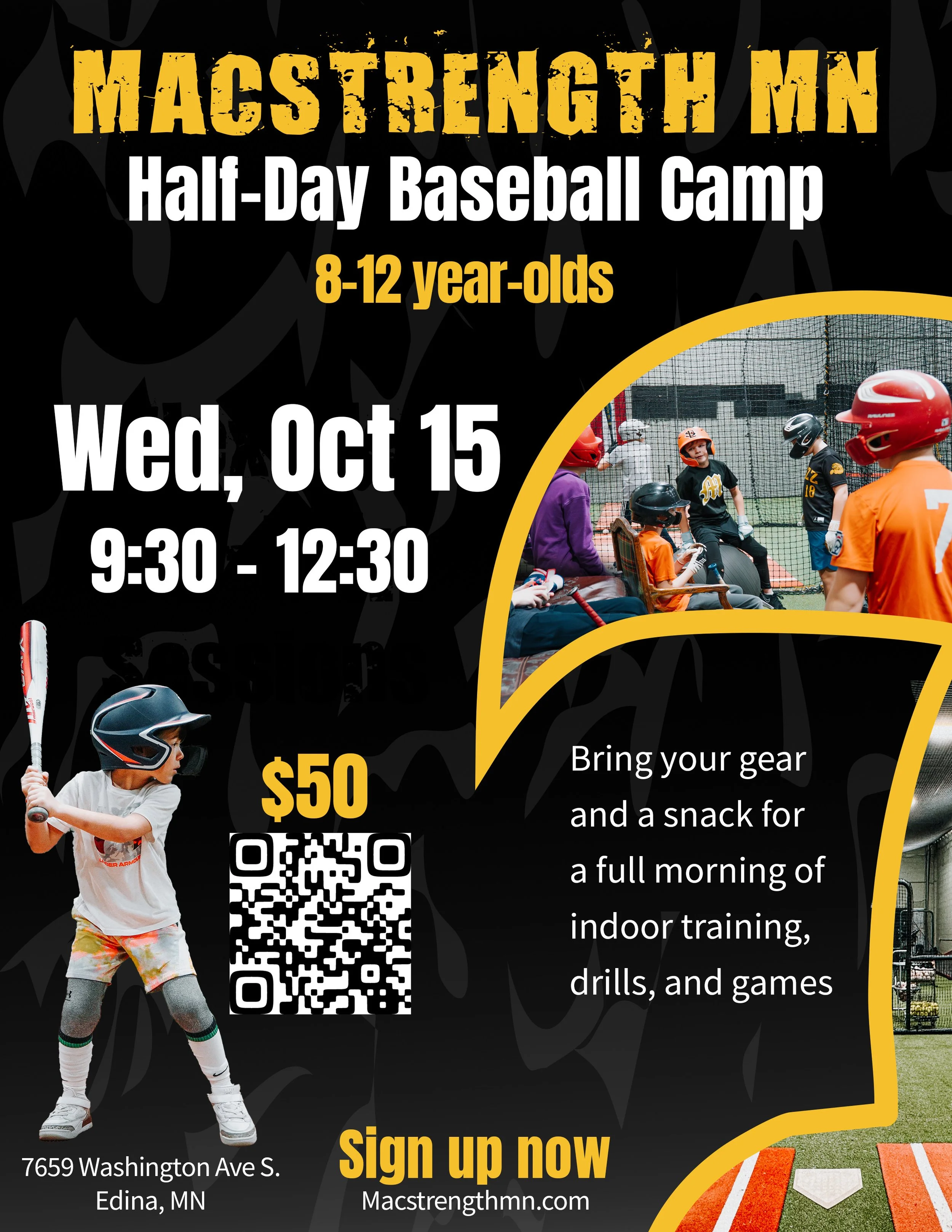 Day Camp is for 8-12u baseball players (wiggle room on age).